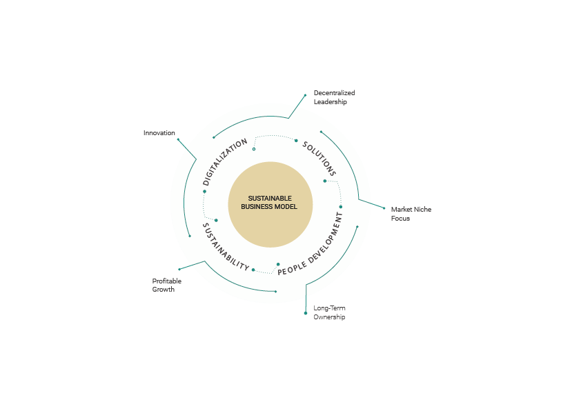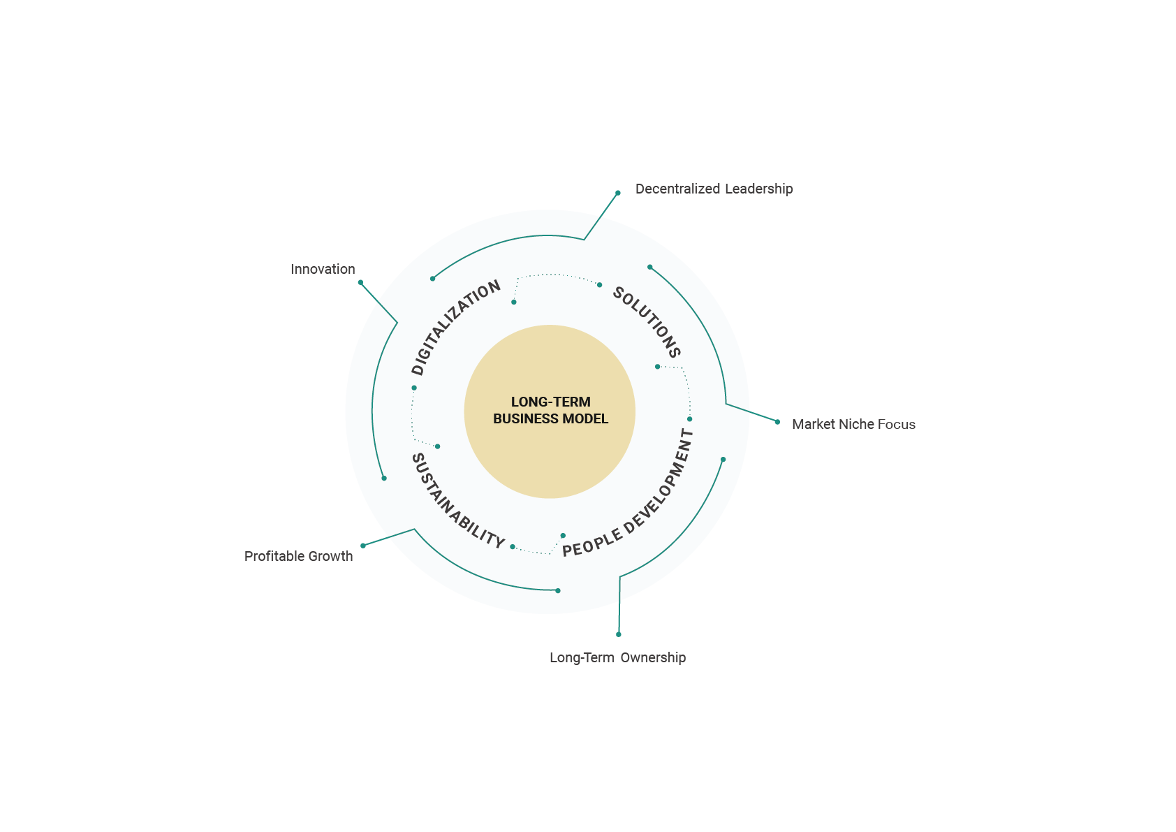 As an owner, we aim to further leverage the advantages of being part of a large group and secure long-term growth. Our four strategic focus areas — digitalization, solutions, sustainability, and people development help us to jointly utilize on the strength that comes from working together. We believe these areas are essential to the long-term growth and continued development of our companies.